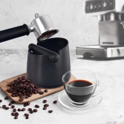 Hold dit kaffehjørne rent og organiseret. Denne knockbox til brugt kaffe rummer nemt flere pucks, så du ikke hele tiden skal løbe til skraldespanden. Robust plast i elegant sort, aftagelig gummistang og nem vedligeholdelse gør den til et ideelt tilbehør til espressomaskiner med portafilter.