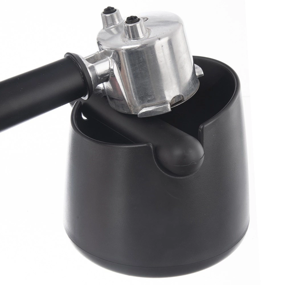 Den skridsikre bund med filtunderlag holder beholderen godt på plads, og gummistangen dæmper slag og beskytter portafilteret.