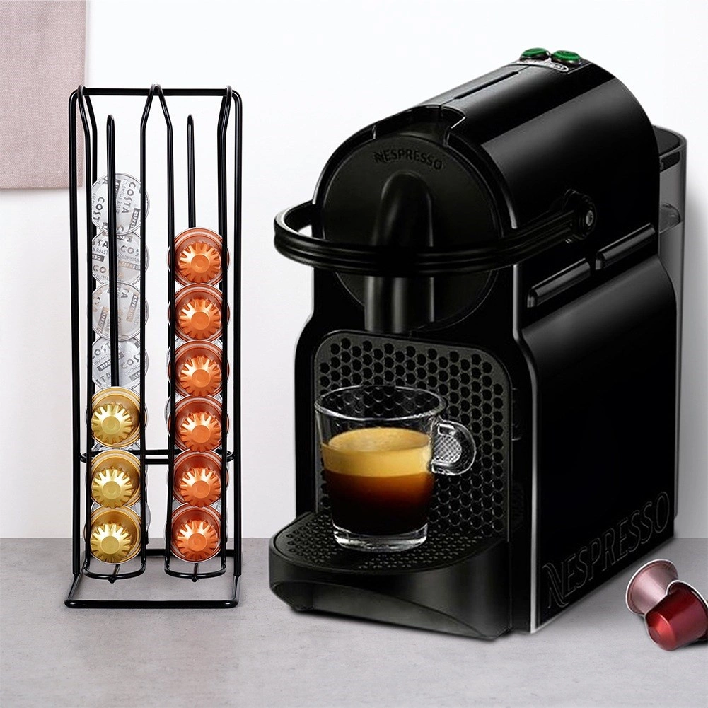 Hold styr på kapslerne og hav dine yndlingskaffer lige ved hånden. Denne stilfulde holder i robust sort metal rummer op til 32 NESPRESSO-kapsler og giver med sine fire overskuelige kolonner nem påfyldning og udtagning af kapsler fra bunden.
