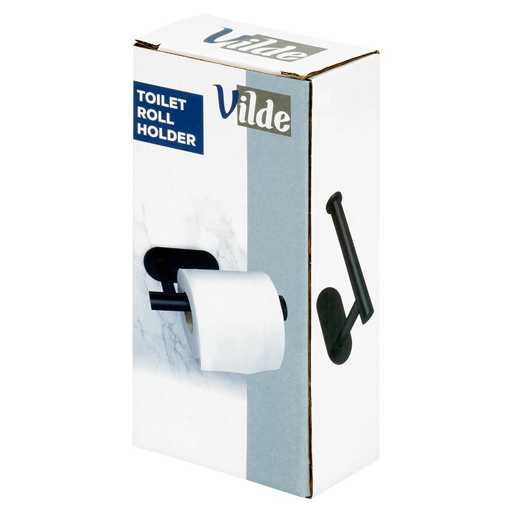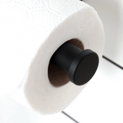 Den minimalistiske toiletpapirholder i mat sort passer smukt til både moderne og klassiske badeværelser. Kvalitetsrustfrit stål sikrer lang levetid og modstandsdygtighed over for fugt, mens den åbne rammekant giver hurtig og bekvem udskiftning af rullen.