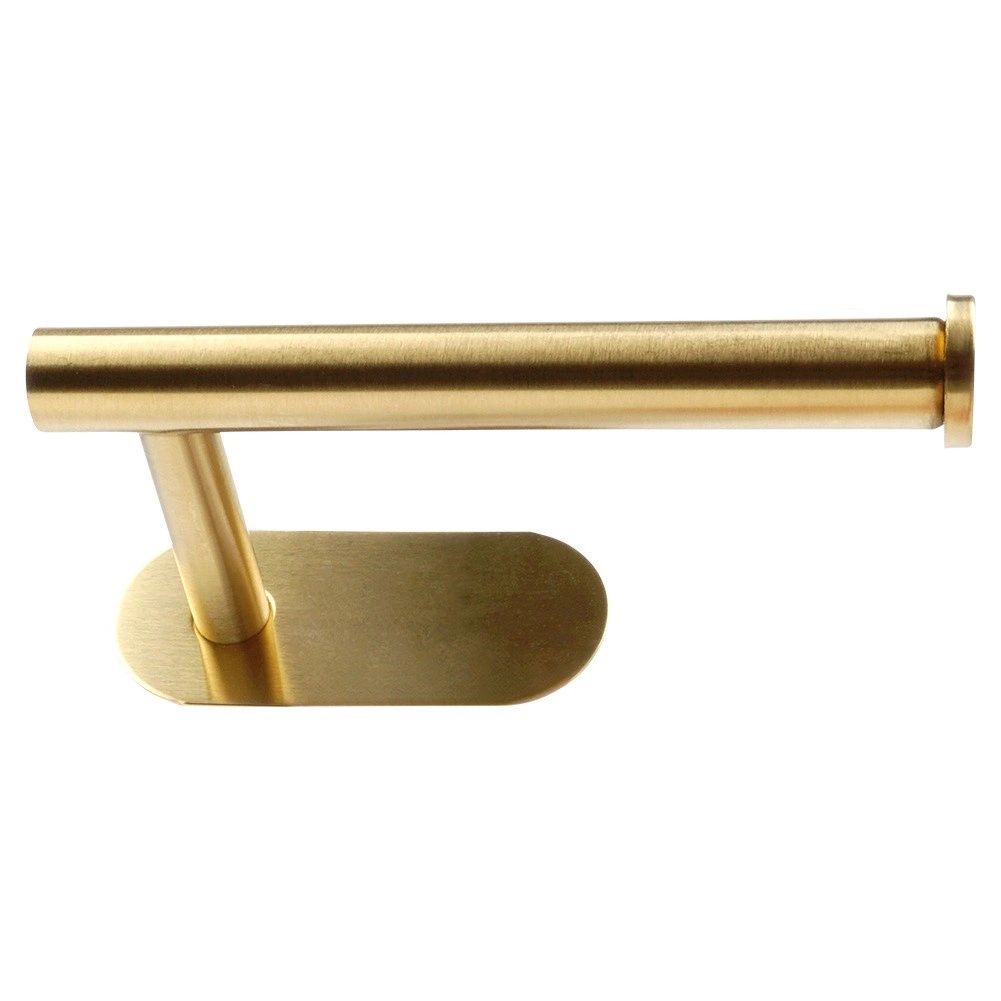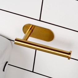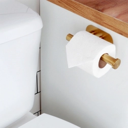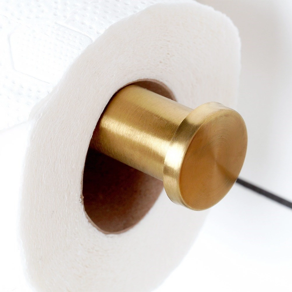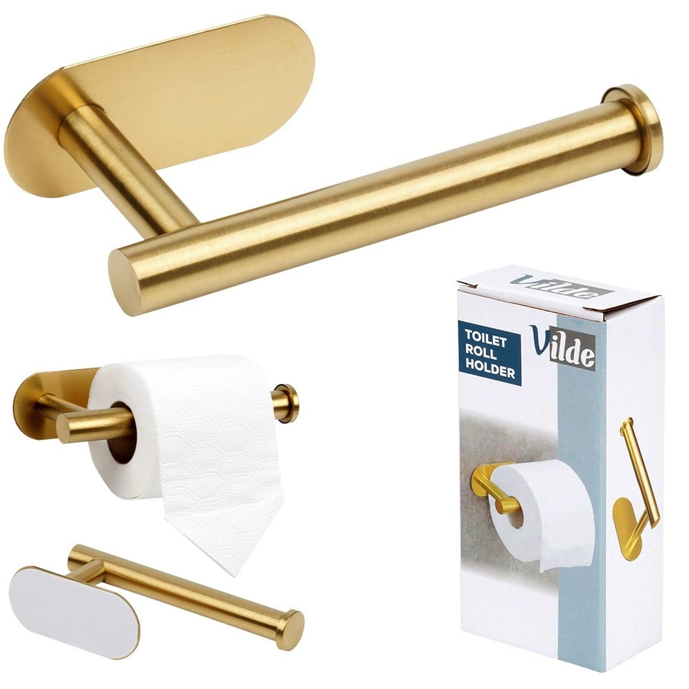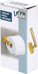 Gør badeværelset hyggeligere og mere praktisk med Vilde toiletpapirholder i moderne guldfarve. Det kvalitetsrige rustfri stål modstår fugt og dagligt slid, mens det minimalistiske design passer til aktuelle indretningstrends.
