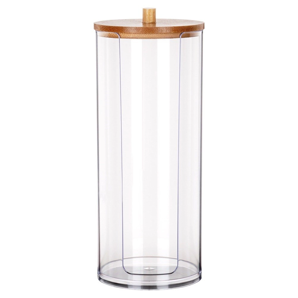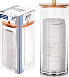 Stilfuld og praktisk organisering til daglig pleje. Klart akryl giver perfekt overblik over indholdet, mens det naturlige bambuslåg med greb tilfører et moderne look og beskytter mod støv. Ideel løsning til overskuelig og hygiejnisk opbevaring af vatrondeller.