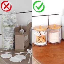 Transparent akryl lader dig straks se, hvor mange vatpinde eller vatrondeller der er tilbage – uden at åbne og uden unødig søgen.