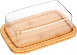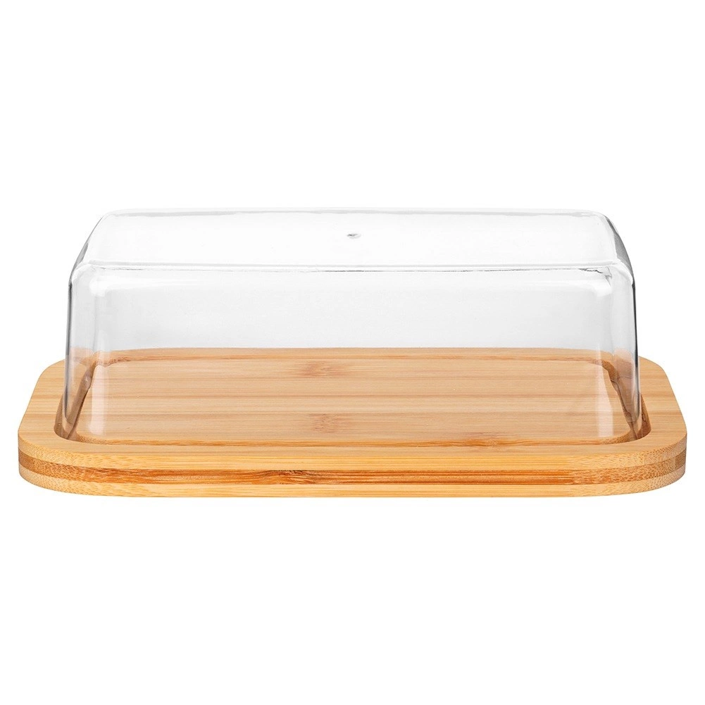 Denne praktiske smørboks kombinerer naturlig bambus og et gennemsigtigt låg for moderne og hygiejnisk opbevaring af smør i køleskabet samt stilfuld servering på bordet. Takket være det klare låg kan du altid se indholdet, mens den præcise pasform hjælper med at holde smørret frisk længere.