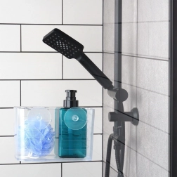Hold orden i bruseren og på hele badeværelset. Denne transparente hylde i målene 18,5 × 9 × 12 cm monteres med to stærke sugekopper, så du kan sætte den op på et øjeblik uden boring og uden at beskadige overflader. Drænslidserne sikrer, at vand ikke samler sig, og at opbevarede genstande tørrer hurtigere.