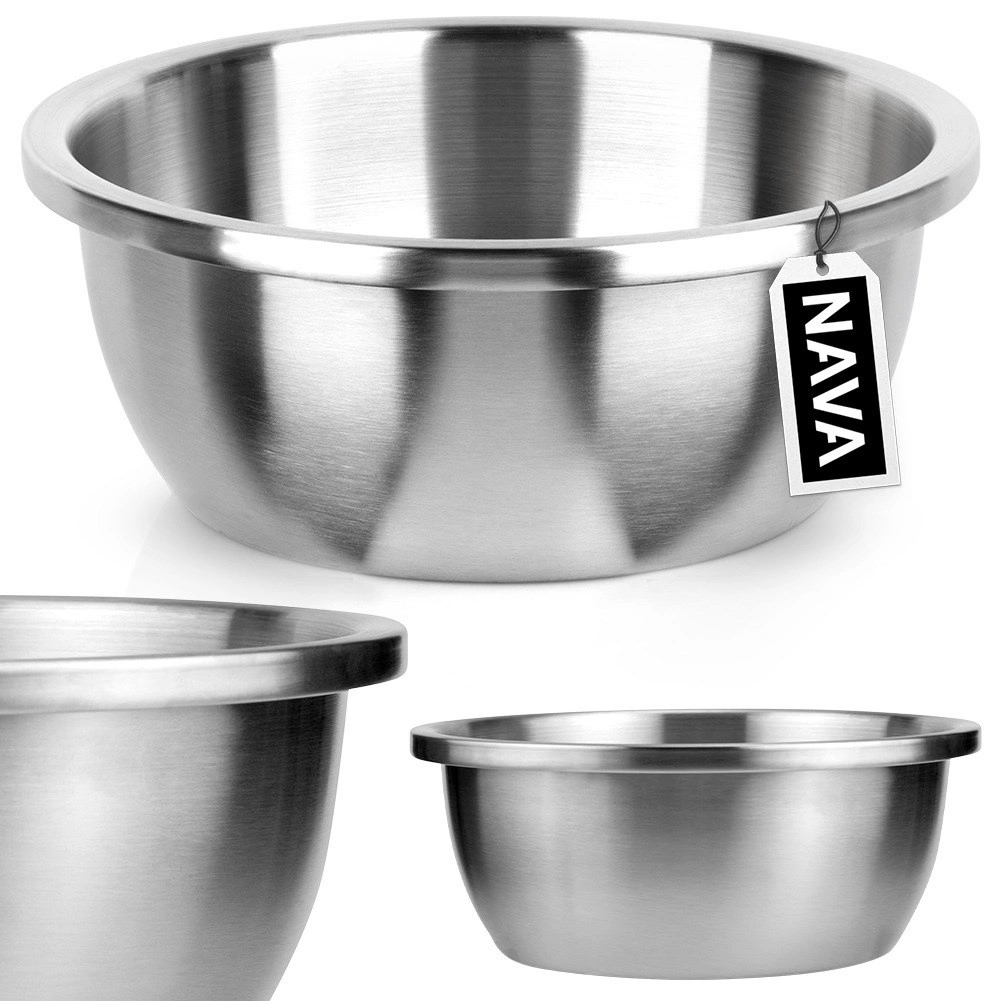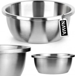 Praktisk røreskål i rustfrit stål med volumen på 4,3 l og diameter 28 cm, mat overflade og dobbeltvæg for bedre varmeisolering. Et let og robust valg til daglig madlavning og servering, egnet til opvaskemaskine, køleskab, fryser og ovn. Elegant, alsidig og hygiejnisk af rustfrit stål fra mærket NAVA i serien Acer.