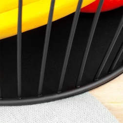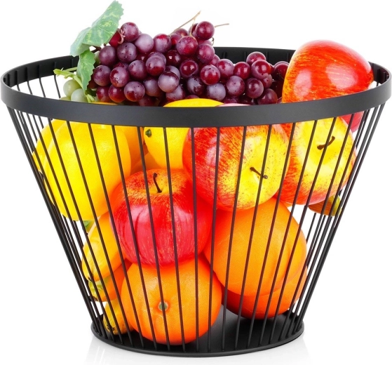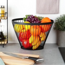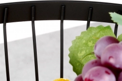 Frugtkurven Misty i metal er et ideelt valg til ethvert køkken og spisestue. Den er fremstillet af kvalitetsmetal med en pulverlakeret sort overflade, som er holdbar og let at holde ren. De høje, udvidede sider rummer et godt lager af frugt eller grøntsager, og takket være det luftige trådede design forbliver indholdet friskt længere.