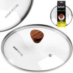 Det praktiske glaslåg NAVA Nature med en diameter på 24 cm er det ideelle supplement til gryder, pander og kasseroller i samme størrelse. Det varmebestandige, gennemsigtige glas gør det muligt at kontrollere madlavningen uden at løfte låget, hvilket sparer energi og bevarer varme og fugt inde i gryden.
