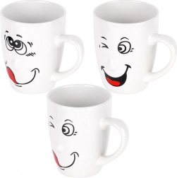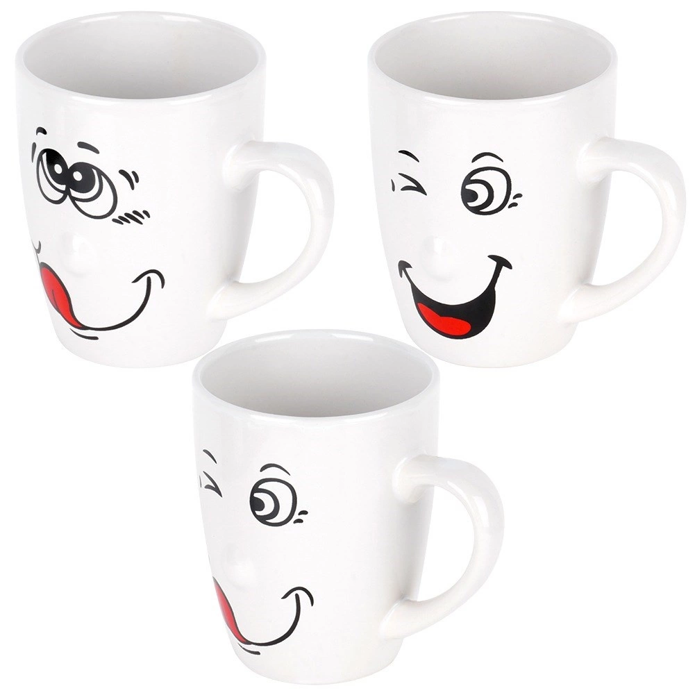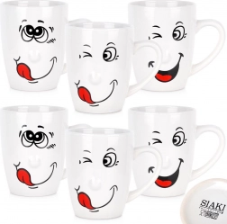 Bring en legende stemning til bordet. Dette sæt med 6 krus i kvalitets hvid keramik imponerer med sjove ansigtsmotiver, som giver hvert sip kaffe eller te et strejf af godt humør. Krusene har et behageligt C‑hank, ligger godt i hånden og er lette at rengøre takket være den glatte glaserede overflade.