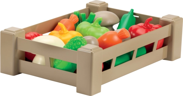 Denne realistiske plastkasse er fyldt med farverige frugt- og grøntsagsrekvisitter, der stimulerer børns fantasi og hjælper med at udvikle finmotorikken. Ideel til legekøkkener, legerum og daginstitutioner.
