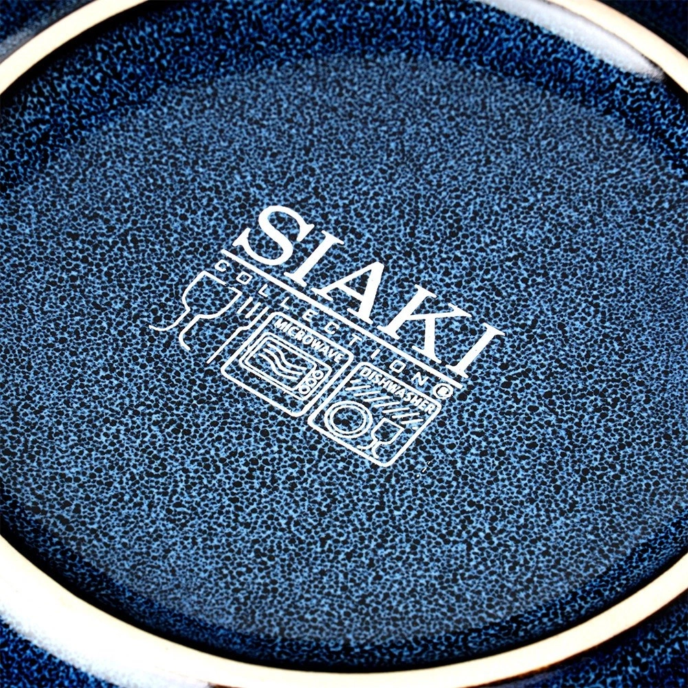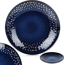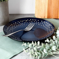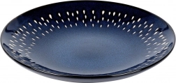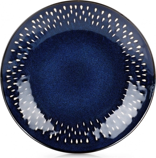 Den dybe blå nuance med dekorative lyse prikker langs kanten giver det dækkede bord et moderne og elegant udtryk. Nemt at kombinere med anden keramik.