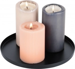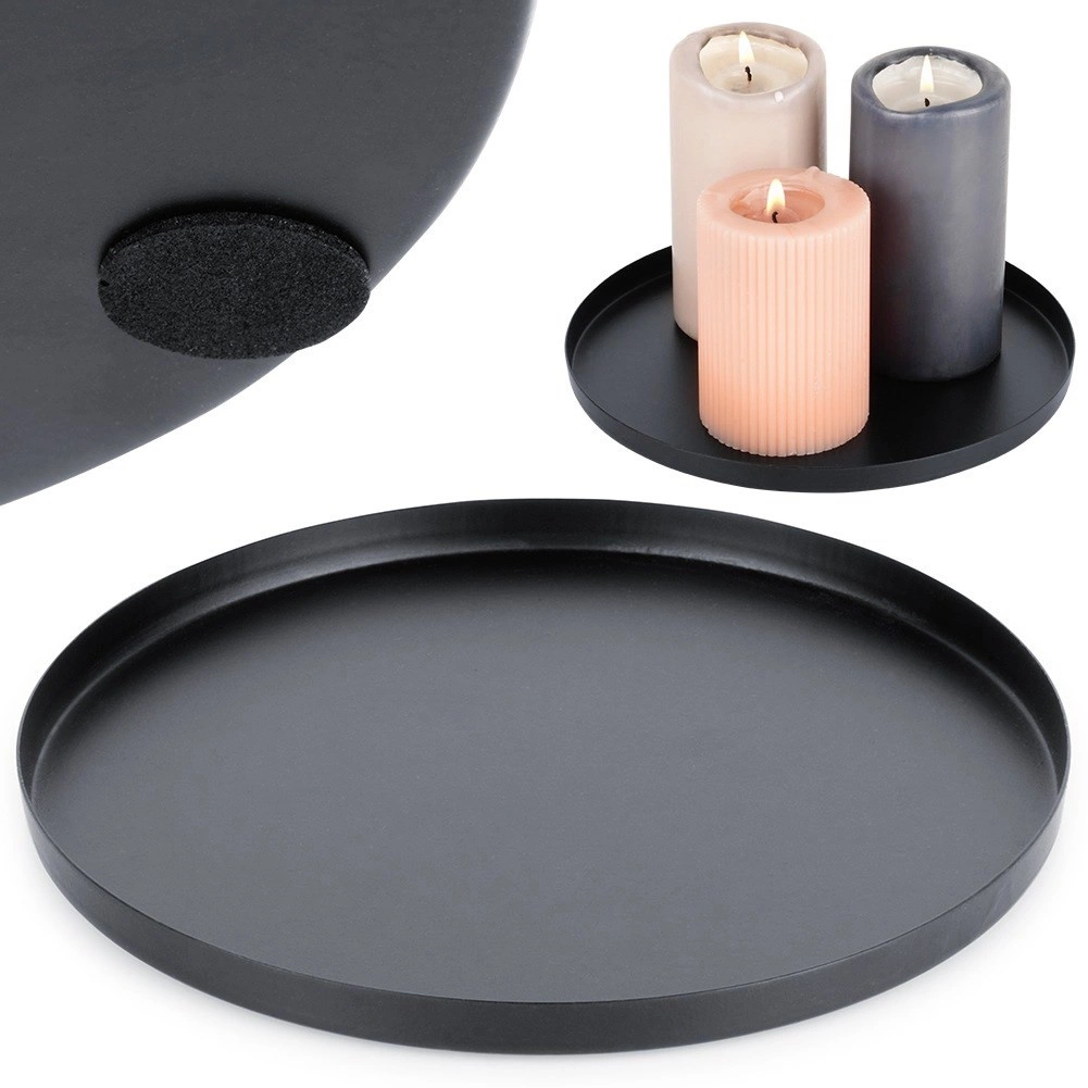 Denne alsidige bakke er et fremragende valg til at udstille lys, små dekorationer og smykker. Den matte sorte finish og rene linjer understreger en moderne indretning, mens den lave kant holder alt sikkert på plads og opfanger eventuelle dryp af voks.
