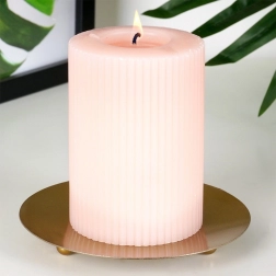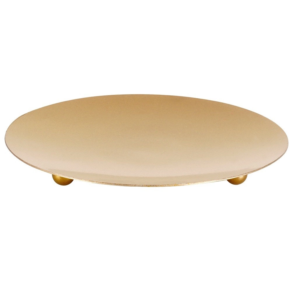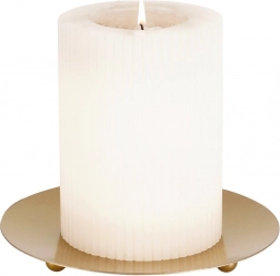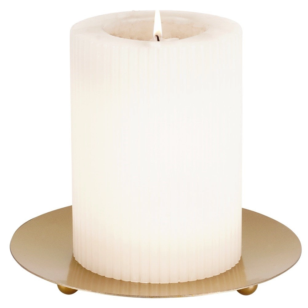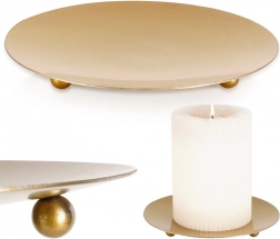 Denne stilfulde guldfarvede metalunderlag til stearinlys udmærker sig ved et rent, minimalistisk udtryk og kvalitetsbearbejdning. Den matte guldtone er let at kombinere med forskellige indretningsstile – fra moderne til skandinavisk. Takket være de praktiske ben virker den let i udtrykket og står samtidig sikkert på plads.