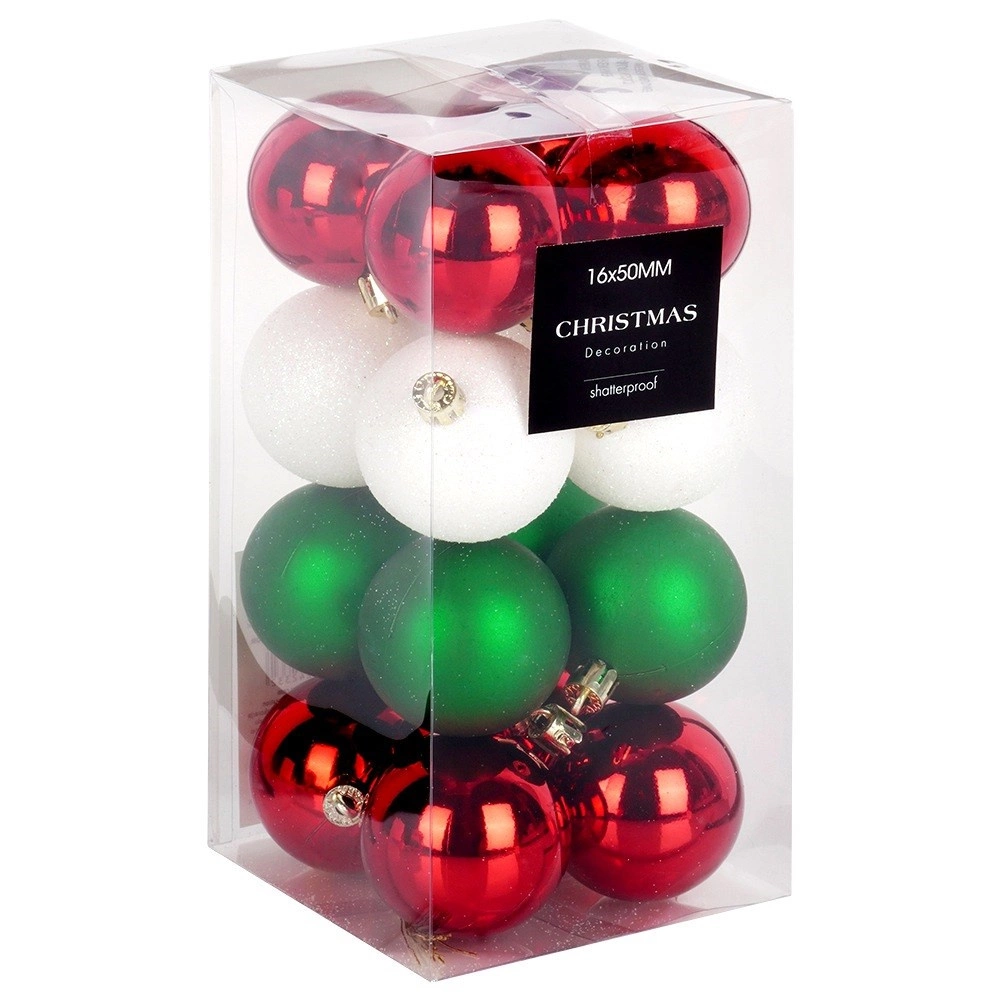 Pynt dit træ med et elegant sæt på 16 ubrudelige kugler i en traditionel julefarvemix. Kombinationen af blanke, matte og glitrende overflader giver en afbalanceret og stilfuld effekt, som skiller sig ud på enhver julegran og i moderne interiørdekorationer.