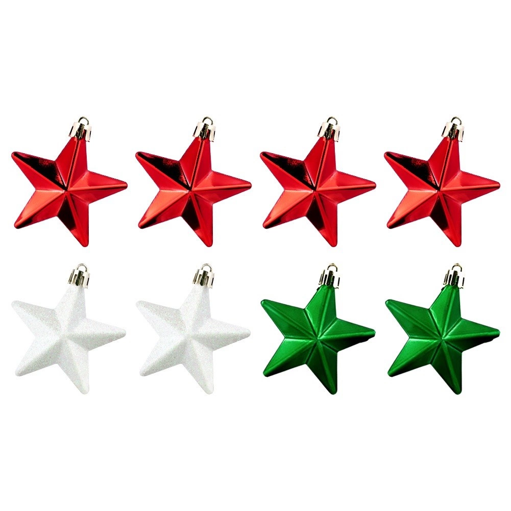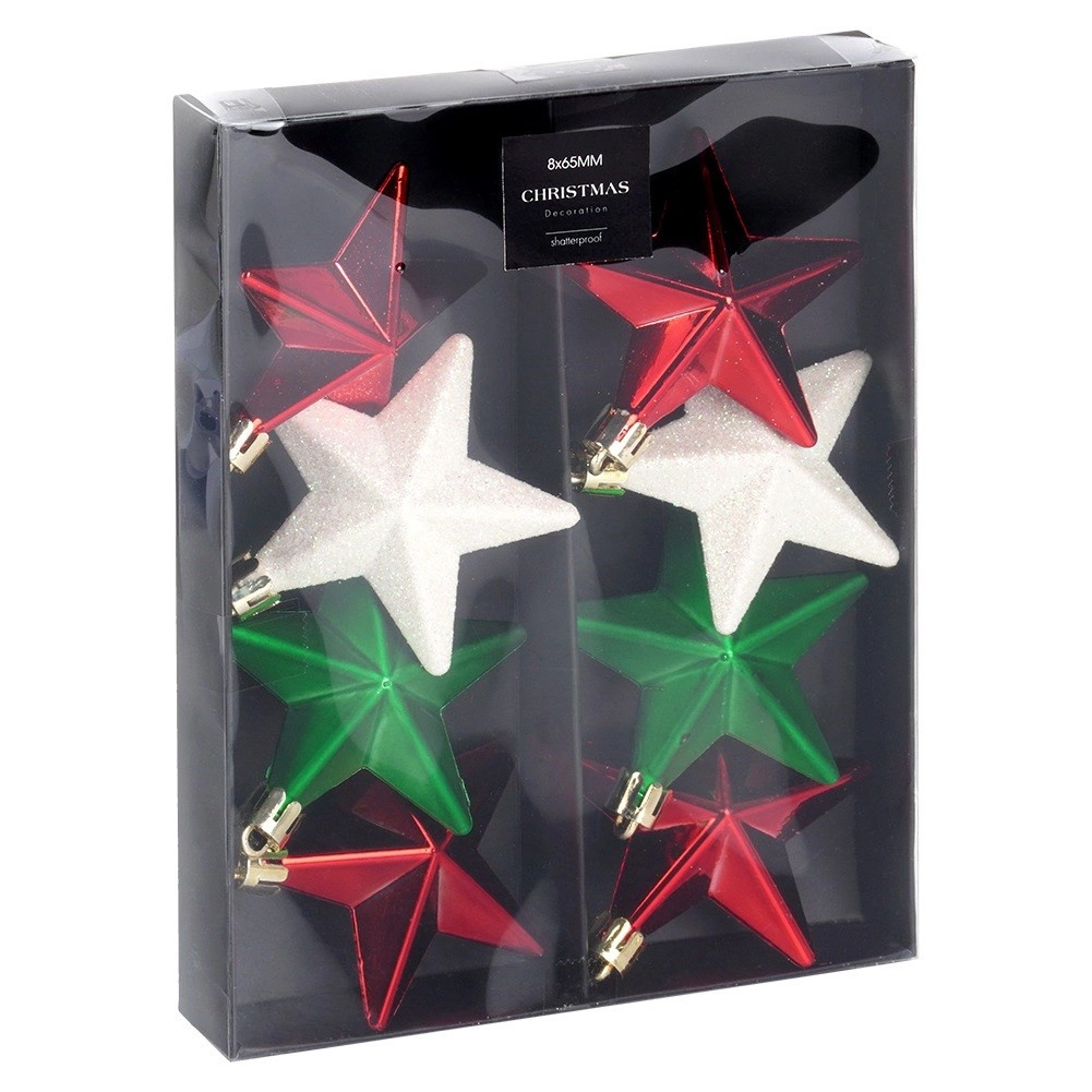 Bring en magisk julestemning ind i dit hjem. Sættet indeholder 8 stk. holdbare stjerner af kvalitetsplast, som troværdigt efterligner glas, men er langt mere sikre og slidstærke. Kombinationen af tre overflader – blank, mat og glimmer – skaber en iøjnefaldende kontrast og reflekterer lyset smukt på træet.