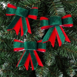 Bånd i rød og grøn med fløjlseffekt giver udsmykningen et rigt og festligt præg.