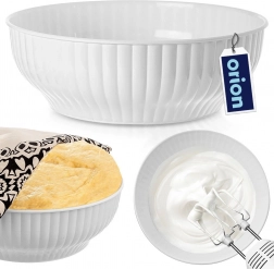 Denne universelle hvide skål er en pålidelig hjælper til daglig madlavning og bagning. Med et volumen på 2,5 l klarer du nemt blanding af dej, piskning af cremer og tilberedning af salater. Lodrette riller sikrer et behageligt og sikkert greb, mens det tidløse design passer til ethvert bord.