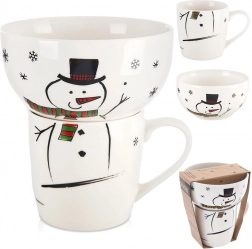 Dette elegante porcelænssæt med snemandstema forvandler hver morgen til en hyggelig rutine. Kop og skål danner tilsammen et muntert vinterdesign, der fanger børns opmærksomhed fra 3 år og glæder også voksne. Takket være den høje kvalitet er sættet robust til daglig brug.