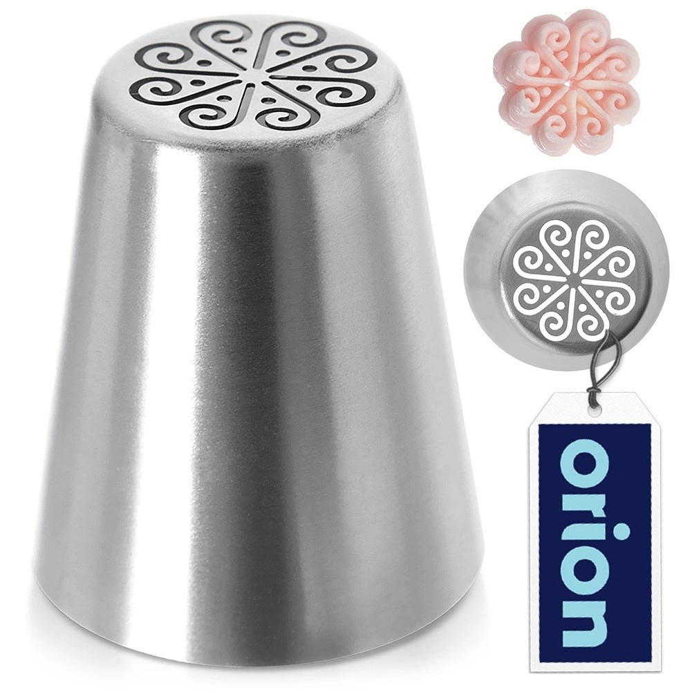 Denne russiske tyl med blomsteråbning lader dig på ingen tid trylle smukke blomster frem af smørcreme eller marengscreme. Den er ideel til pyntning af kager, tærter og små desserter. Det robuste rustfri stål sikrer lang levetid, nem rengøring og sikker kontakt med fødevarer.