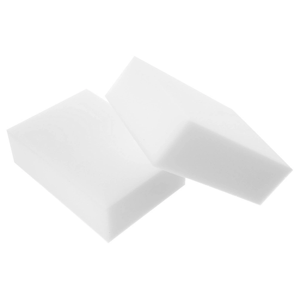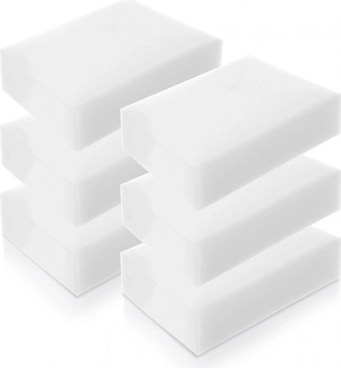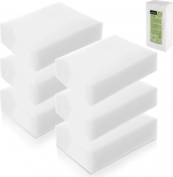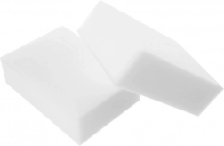 Alsidig anvendelse i hjemmet: plast (rammer, afbrydere), keramik (håndvaske, fliser), rustfrit stål (vask, apparater), glas og lakerede overflader. Fungerer også fremragende på vægge – fjerner streger, skomærker og tegninger med farveblyanter eller tusch. Hver svamp: 10 × 7 × 3 cm.