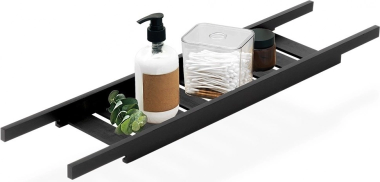 Stilfuld bambusbakke til badekar i målene 68 × 15 × 3,5 cm, som holder alt det nødvendige lige ved hånden. Den er lavet af naturlig bambus i sort finish, som er modstandsdygtig over for fugt, tørrer hurtigt og deformeres ikke. Ideel til shampoo, sæber, svampe, men også som underlag til lys, drikke eller en snack under afslapning i badekarret. Universel størrelse passer til de fleste badekar, og montering uden værktøj klares på få sekunder.