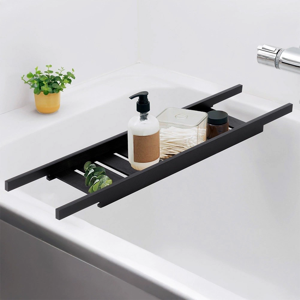 Giv dit badeværelse et både praktisk og dekorativt element. Den sortlakerede bambusbakke brobygger elegant over badekarets kanter og skaber en bekvem afsætningsflade til daglige fornødenheder og wellness-øjeblikke. Bambus er naturligt fugtbestandig, hurtigtørrende og nem at vedligeholde.