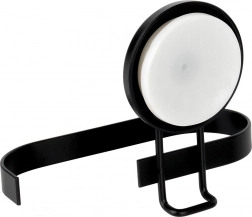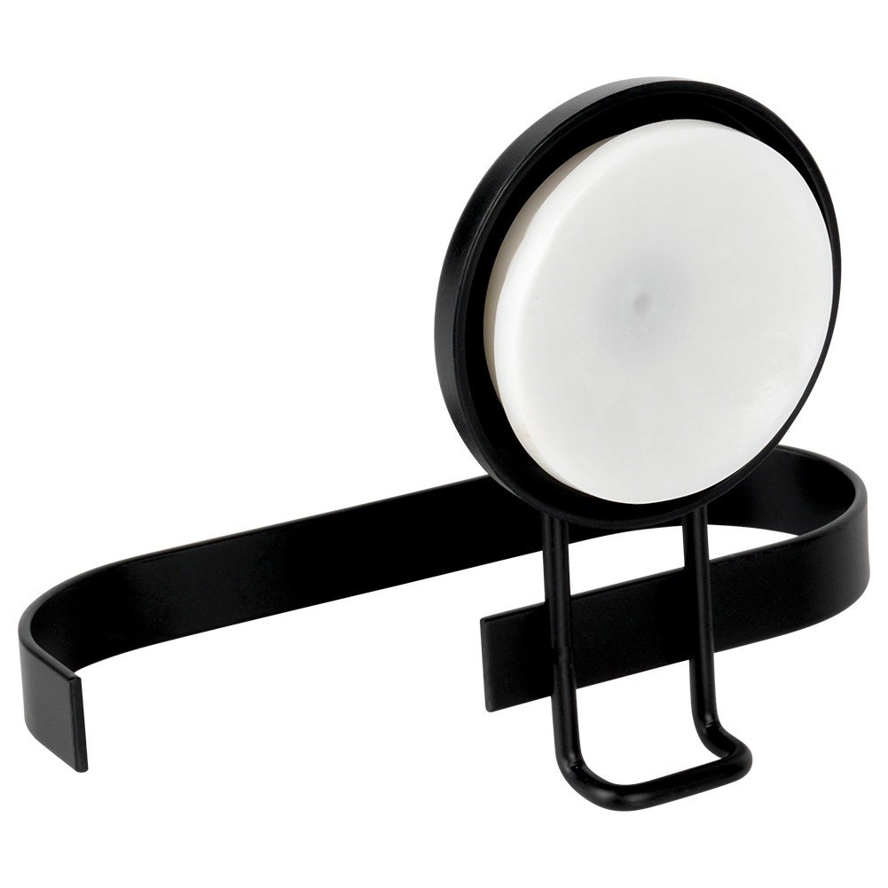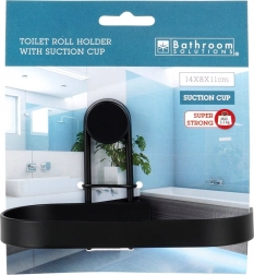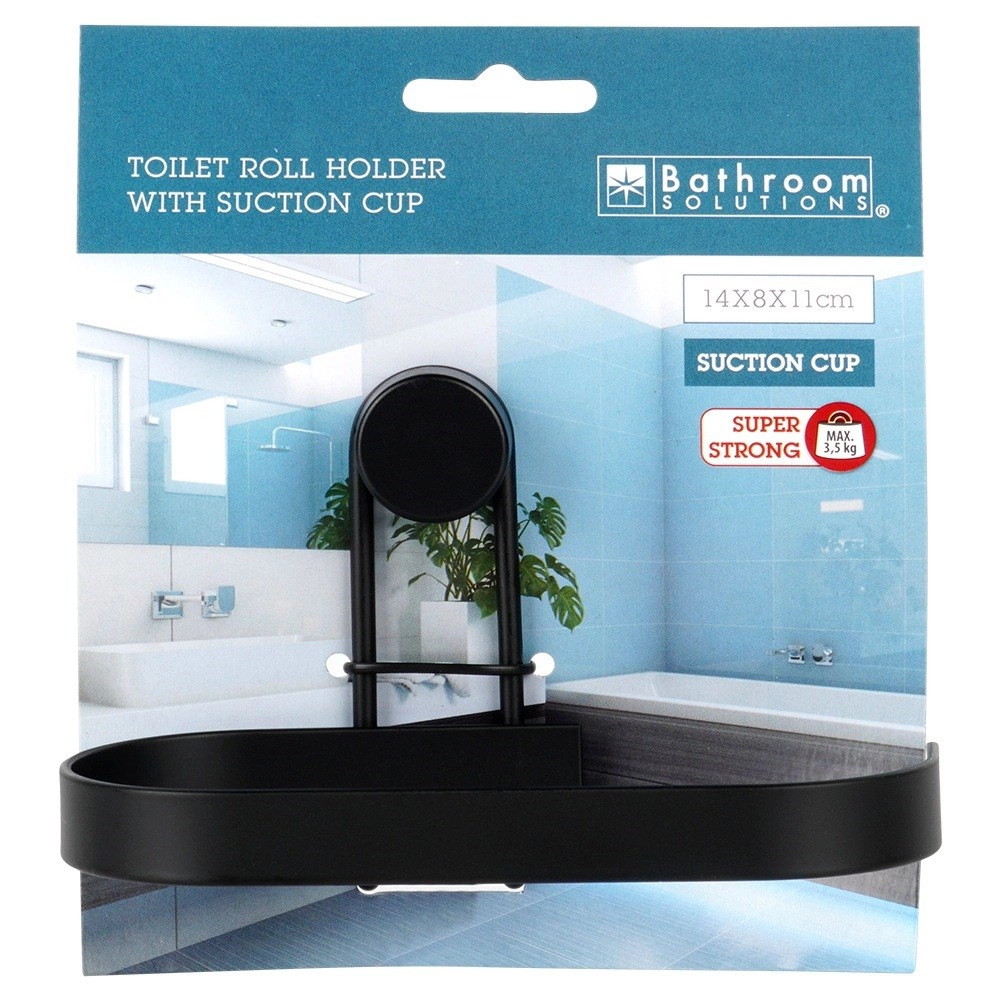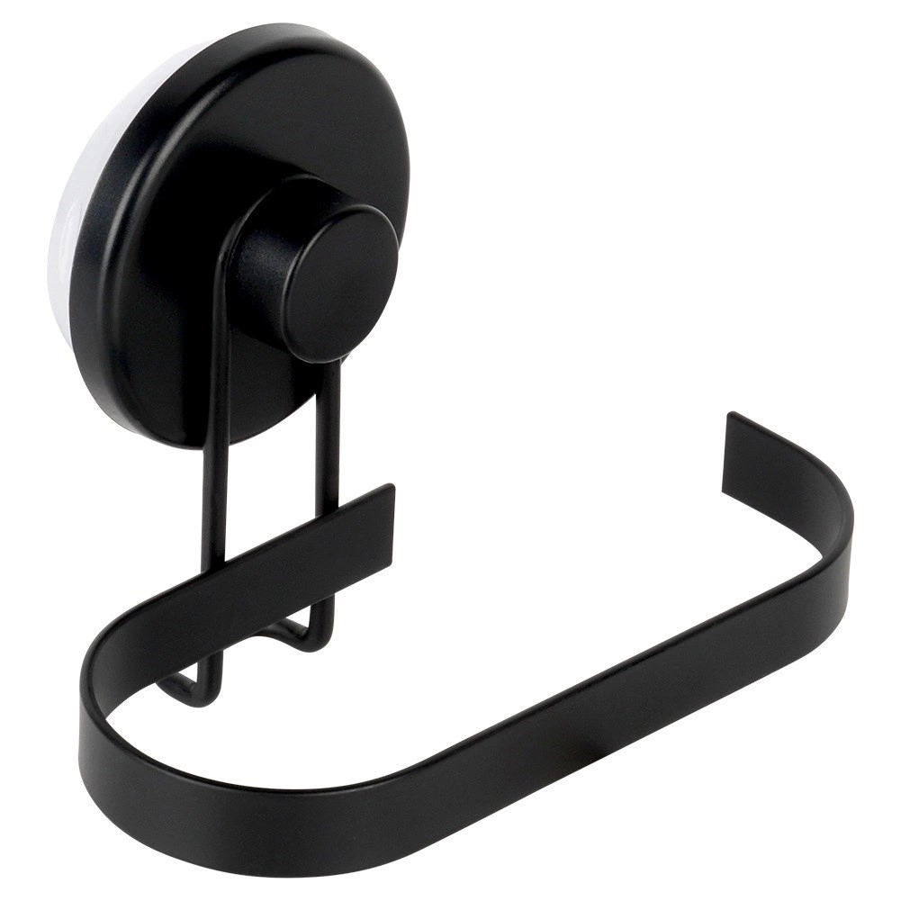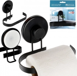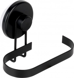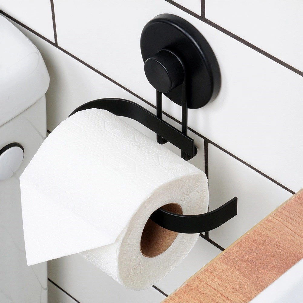 Denne metalholder til toiletpapir med sugekop kombinerer praktisk anvendelse med moderne design. Den matte sorte finish passer perfekt til nutidens badeværelser, og takket være den åbne ende giver den hurtig udskiftning af papir uden besvær.