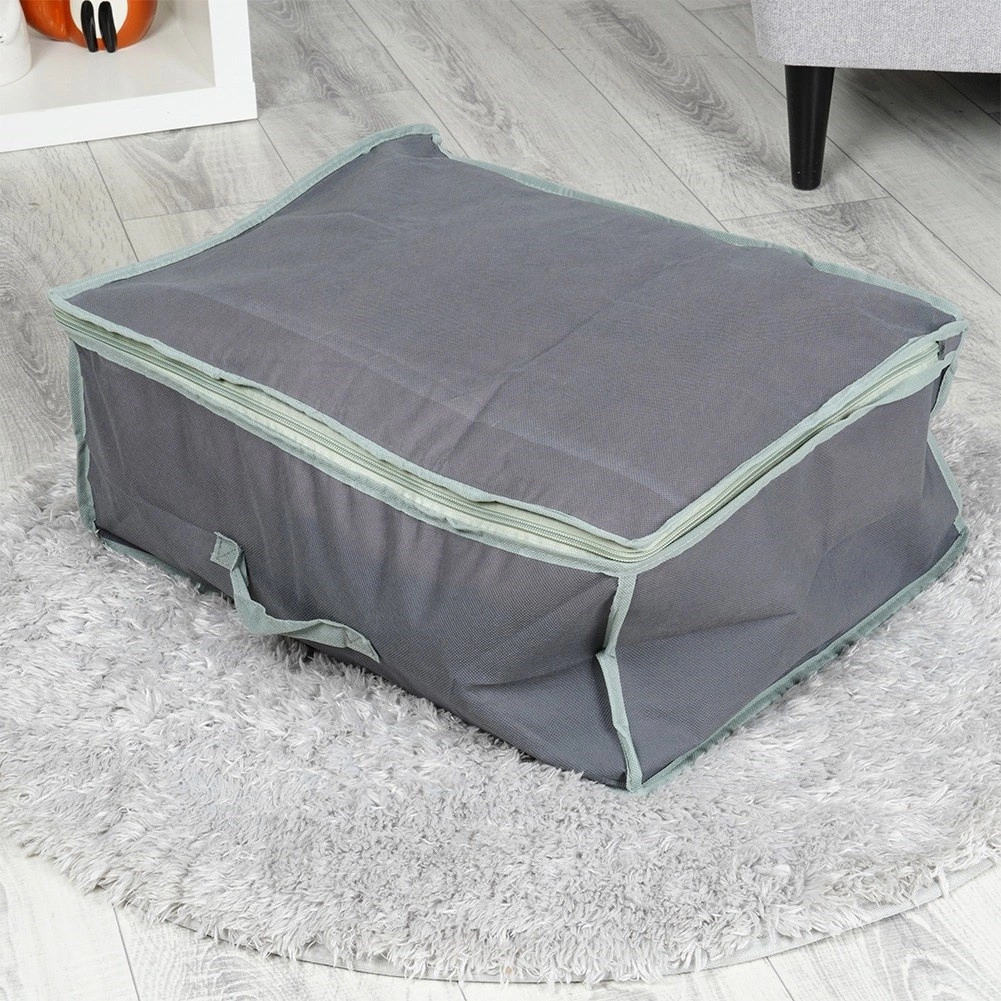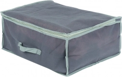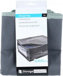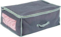Praktisk opbevaringspose til sengetøj, tæpper, puder og tøj med et volumen på 38 l, som beskytter dine tekstiler mod fugt, støv og møl. Takket være lynlåslukning, gennemsigtigt vindue til hurtigt overblik og stærke håndtag er den ideel til både skab og under sengen. Det slidstærke polyesterstof i grå farve sikrer lang holdbarhed og et rent udseende.