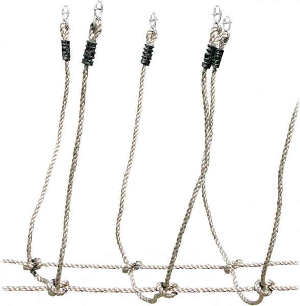 - Ophængning med metaløjer mellem to faste punkter (f.eks. træer)