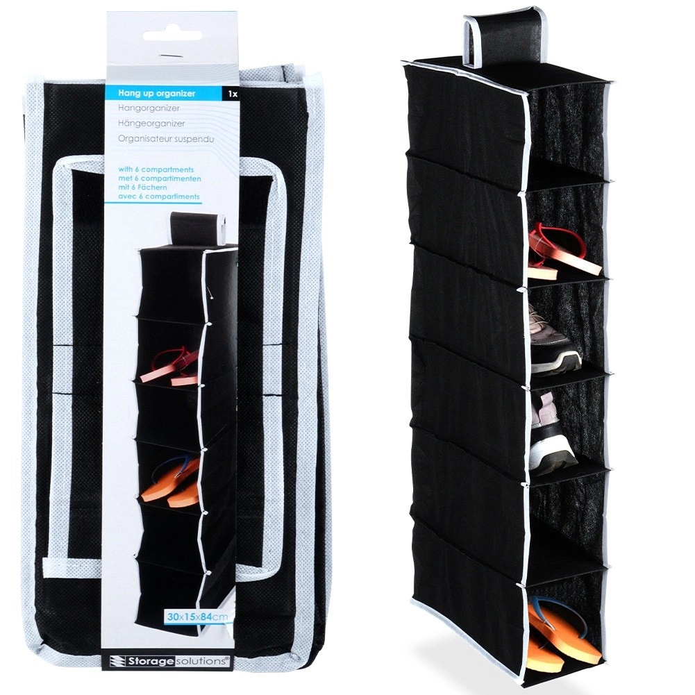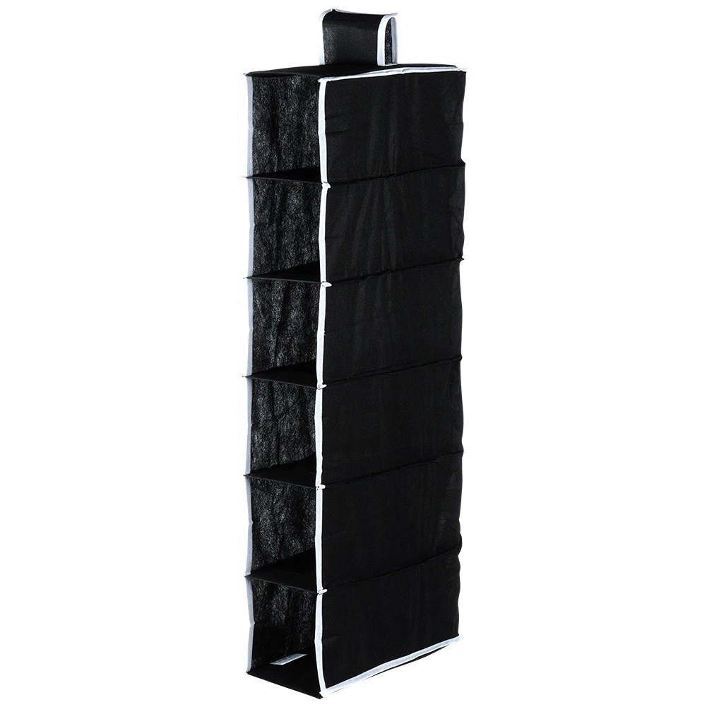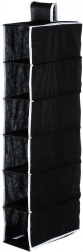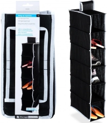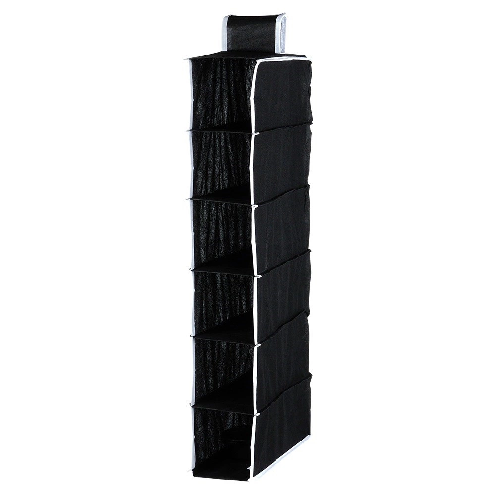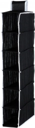 Maksimer opbevaringspladsen i skabet med den kompakte hængende organisator, som tilbyder 6 rummelige hylder til overskuelig opbevaring af sko, T-shirts, håndklæder eller accessories. Den sorte udgave med kontrastkant virker moderne og alsidig i enhver indretning.