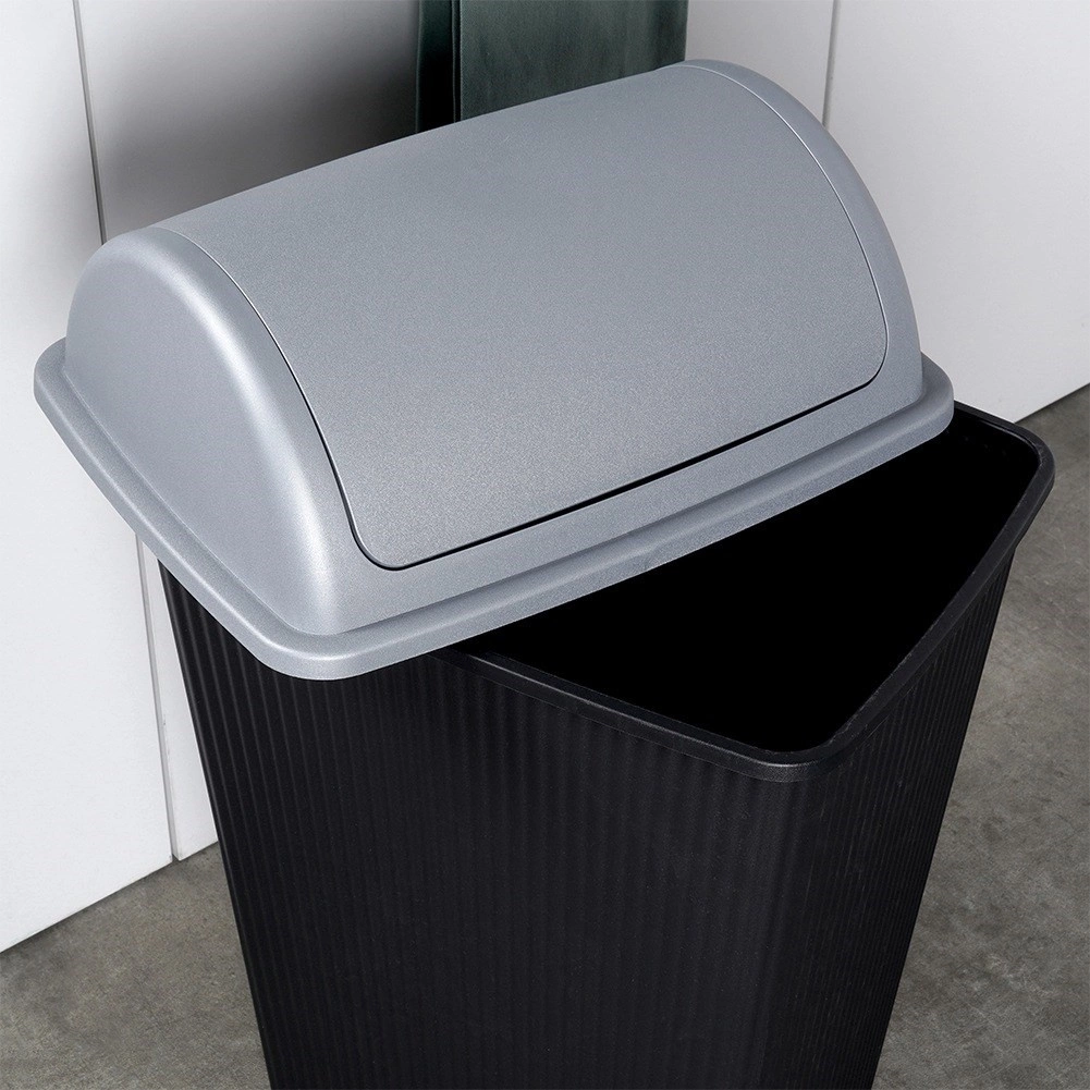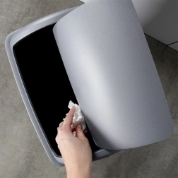 Det praktiske svinglåg roterer og vender automatisk tilbage til lukket position efter brug. Det minimerer lugte og holder indholdet skjult for et renere og mere æstetisk miljø.