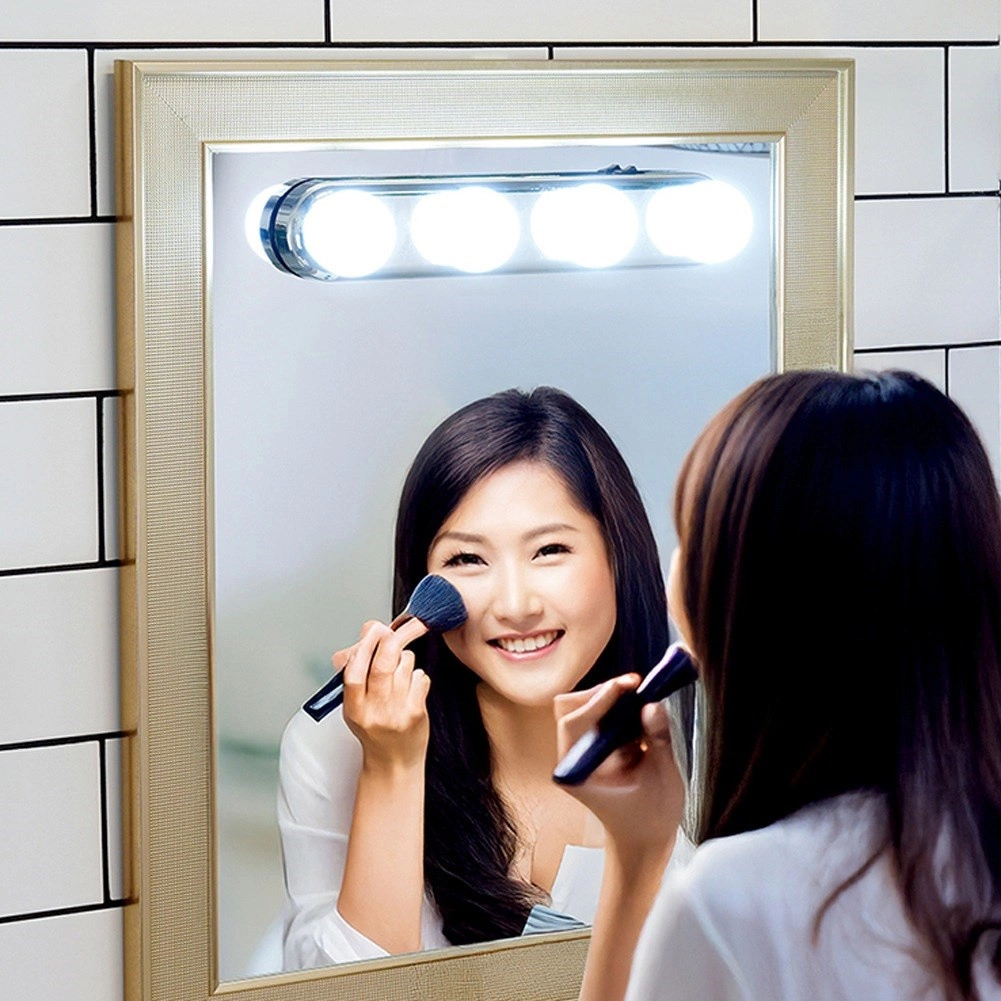 Fire kugleformede LED-pærer giver klart, jævnt lys uden forstyrrende skygger – ideelt til makeup og detaljeret pleje.