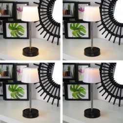 Moderne LED-bordlampe med justerbar højde 11–29,5 cm, berøringsstyring og dæmpning for behagelig belysning til både arbejde og afslapning. Den tilbyder varmt hvidt lys, USB‑C-opladning og en elegant kombination af sort base, metalstang og hvidt skær. Perfekt til skrivebord, sengebord og stue.