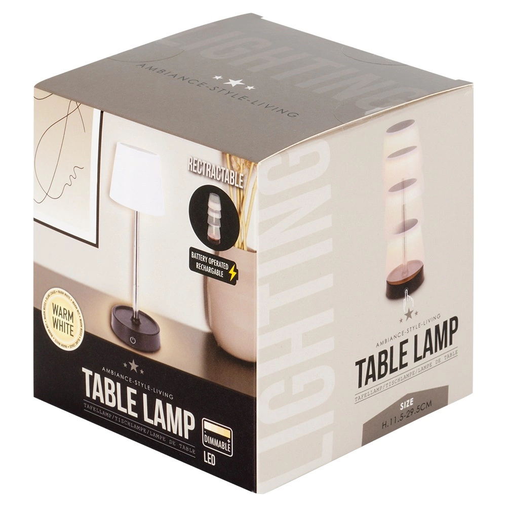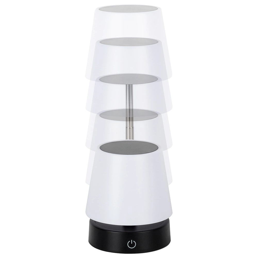 Denne dekorative LED-bordlampe udmærker sig ved et rent design og alsidig anvendelse. Takket være den regulerbare højde 11–29,5 cm og de kompakte mål tilpasser den sig nemt både arbejds- og afslapningszoner. Varmt hvidt lys skaber en hyggelig atmosfære i soveværelse, stue og spisestue.