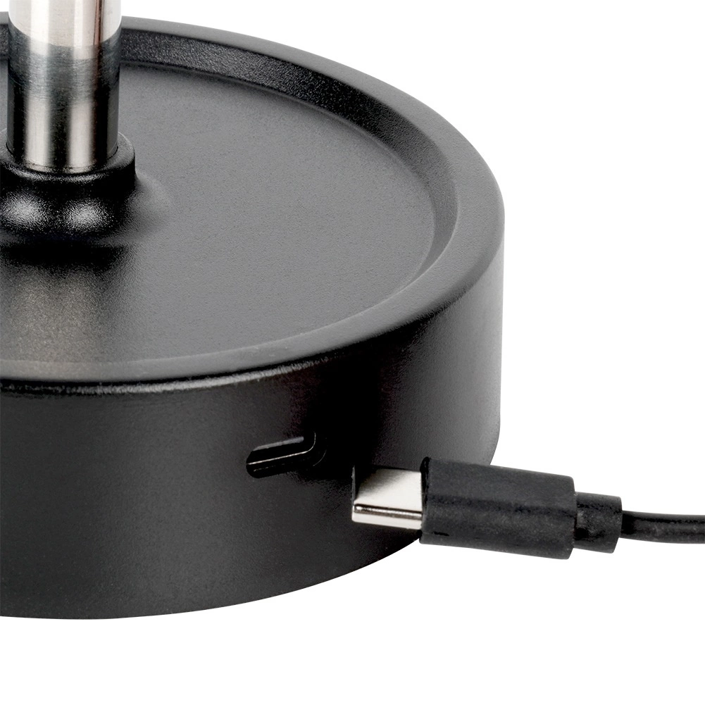 Berøringsstyring og trinløs dæmpning lader dig indstille præcis det lys, du har brug for. Det integrerede batteri med USB‑C-opladning sikrer bekvem trådløs brug uden generende kabler. Den stabile metalkonstruktion, sort base med filtdupper og et hvidt skær med diameter 10,5 cm understreger lampens moderne udtryk.