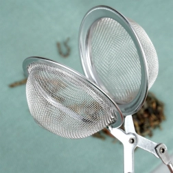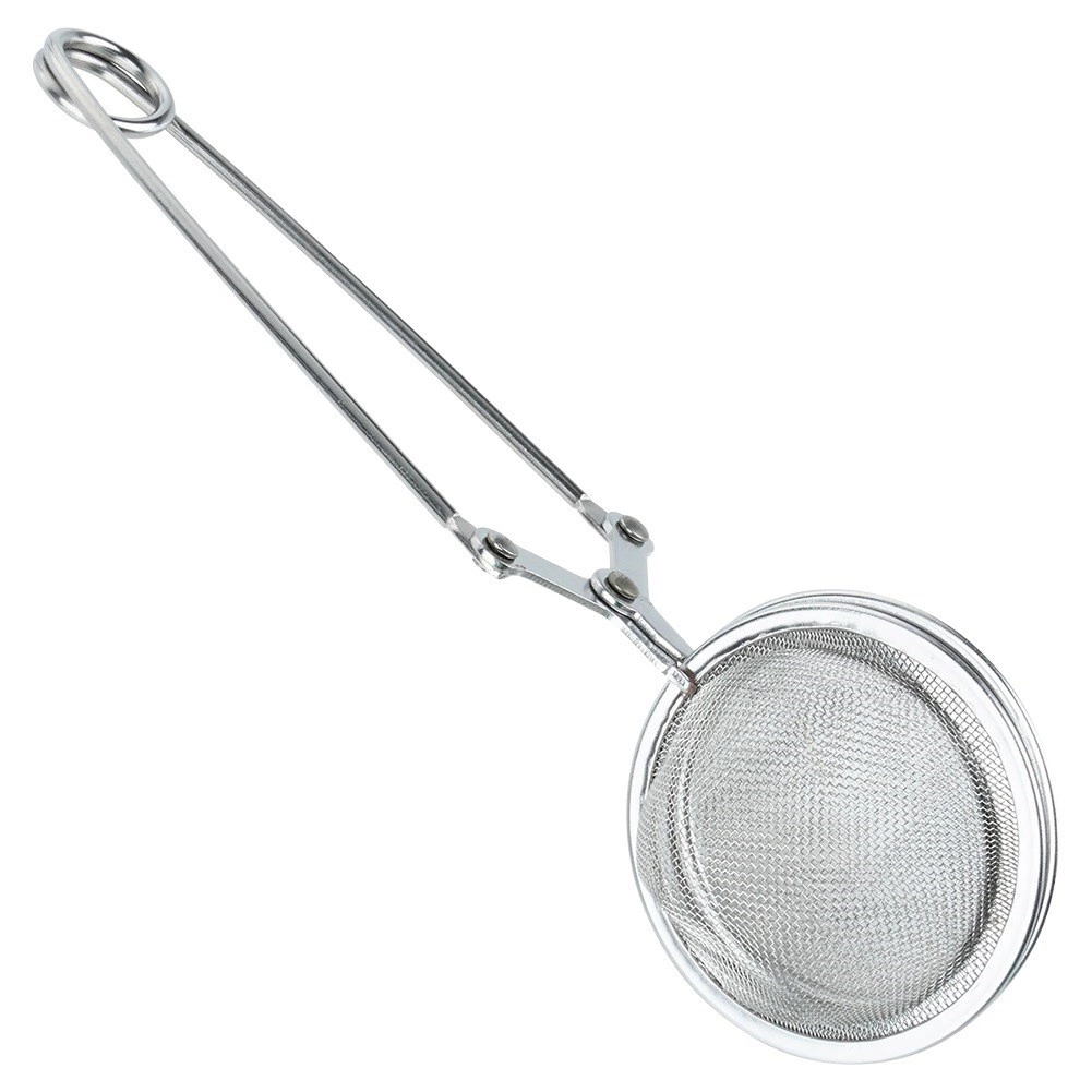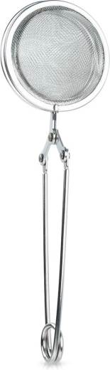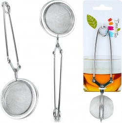 Praktisk rustfrit stålsi til løs te med langt håndtag og tangmekanisme for nem åbning og lukning. Med en diameter på 5 cm og en samlet længde på 16 cm er det ideelt til både kop og kande. Finmasket rustfrit net opfanger selv små partikler, behagelig betjening med én hånd og lang holdbarhed takket være rustfrit stål af høj kvalitet.