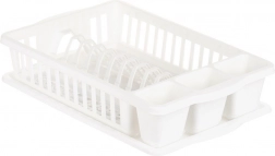 Hold køkkenet tørt og ryddeligt efter opvask. Dette kompakte stativ i klassisk hvid rummer op til 10 tallerkener og tørrer sikkert bestik og småt køkkenudstyr takket være de adskilte rum. Den aftagelige drypbakke opfanger overskydende vand og gør rengøringen nemmere.