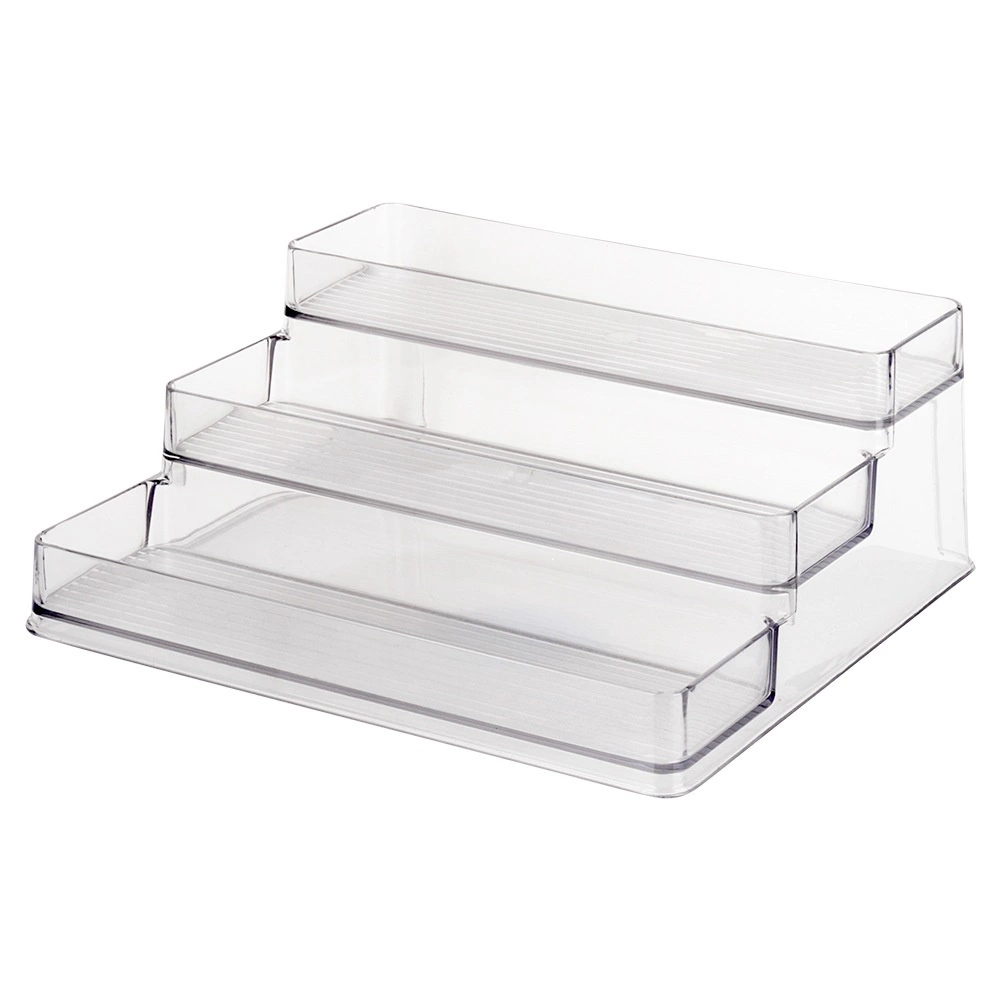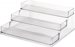 Denne alsidige treetagers organiseringshylde i klar plast forbedrer straks orden og synlighed i dit køkken, badeværelse eller spisekammer. Det transparente materiale gør det nemt hurtigt at finde den nødvendige ingrediens eller kosmetik, mens den trinvise konstruktion sparer plads og øger kapaciteten.