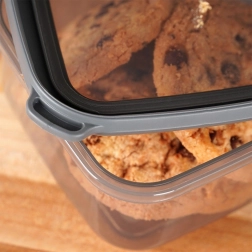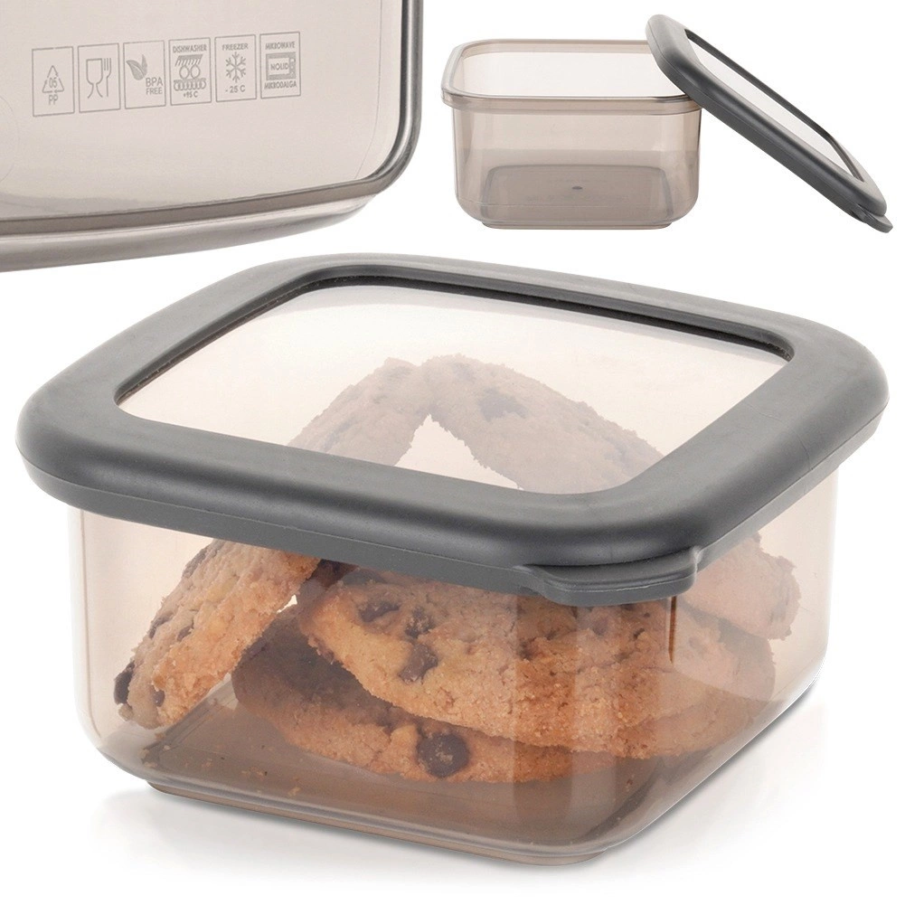Låget slutter tæt og hjælper med at holde varerne friske længere. Beholderen er lavet af kvalitets-, holdbar plast i en moderne grå-gennemsigtig farve, er fødevaresikker og kan vaskes i opvaskemaskine. Ved køb af flere styk kan de let stables for at spare plads i skabe.