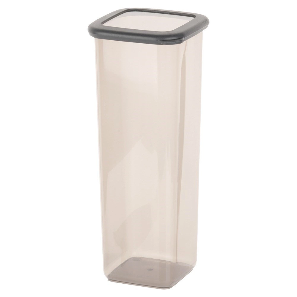 Organisér dit spisekammer smart og stilfuldt. Den høje beholder med målene 11 × 11 × 28 cm rummer op til 2 liter tørvarer og hjælper med sit solide, velsiddende låg med at bevare friskhed og aroma. Den gennemsigtige krop i gråtone sikrer, at du altid straks ser, hvor meget der er tilbage.