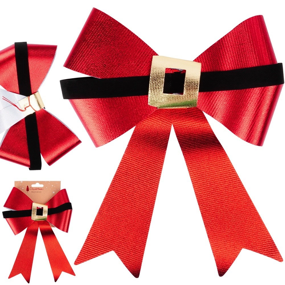 Den røde sløjfe med sort bånd og gylden spænde fremkalder Santa-stilen og skaber øjeblikkeligt en særlig julestemning.
