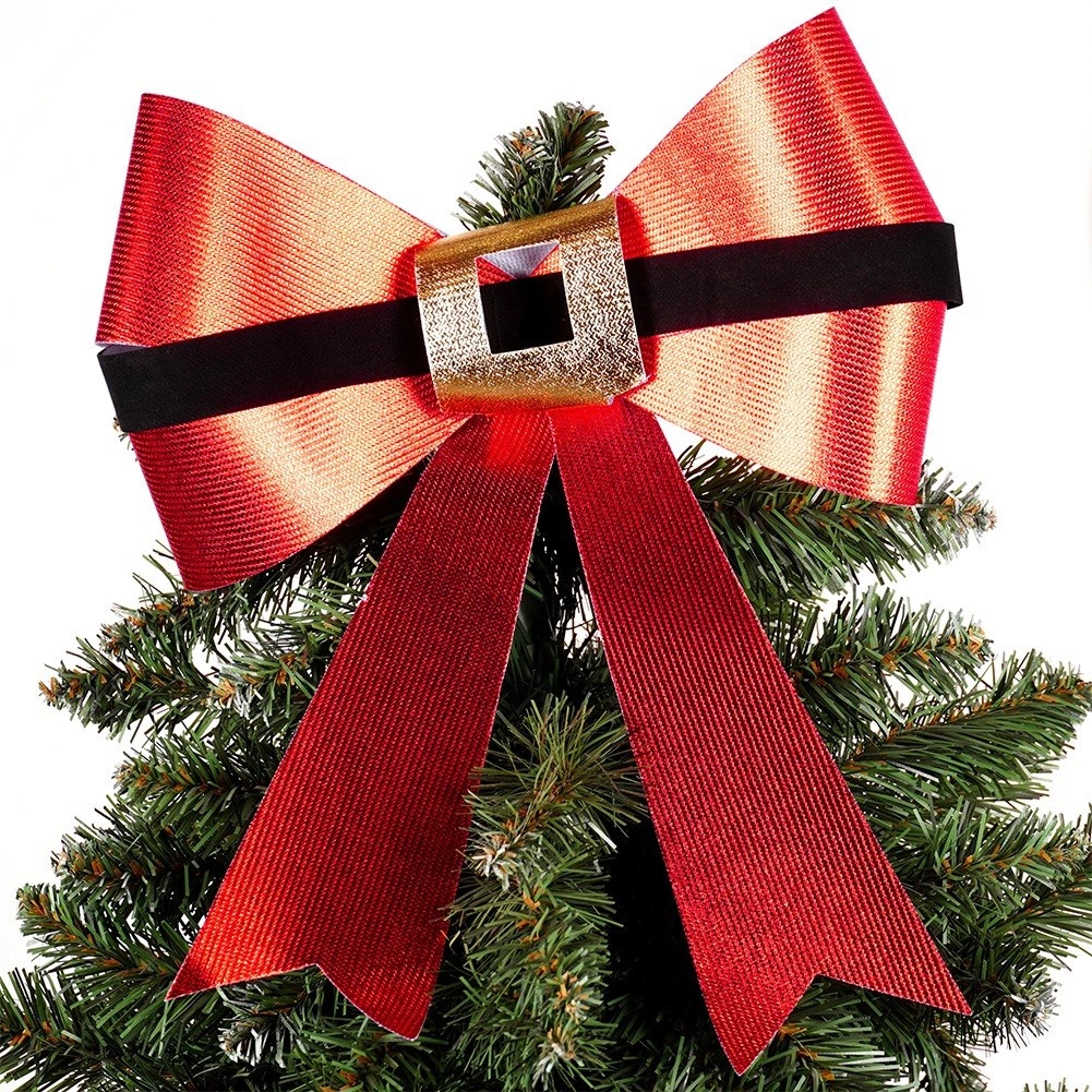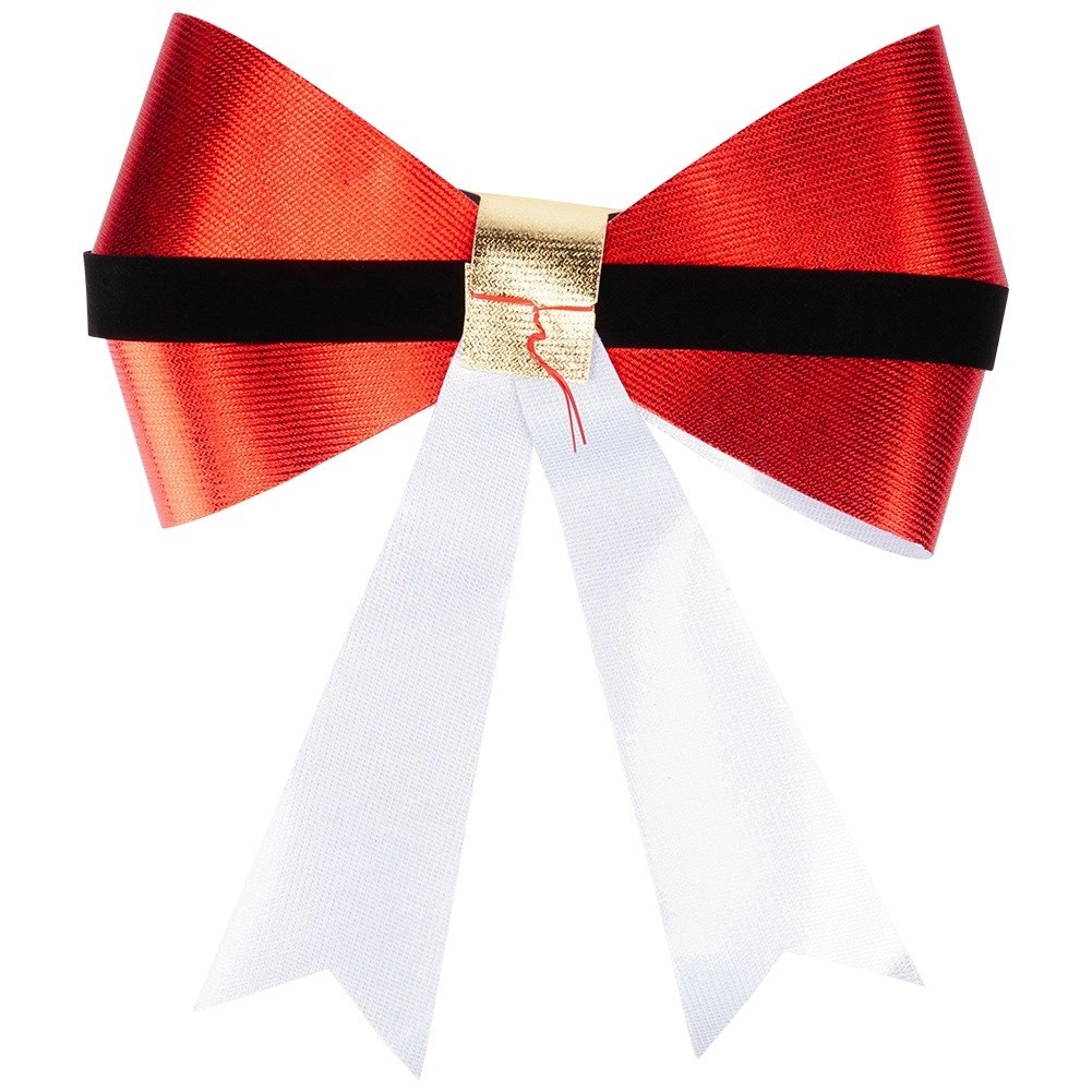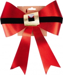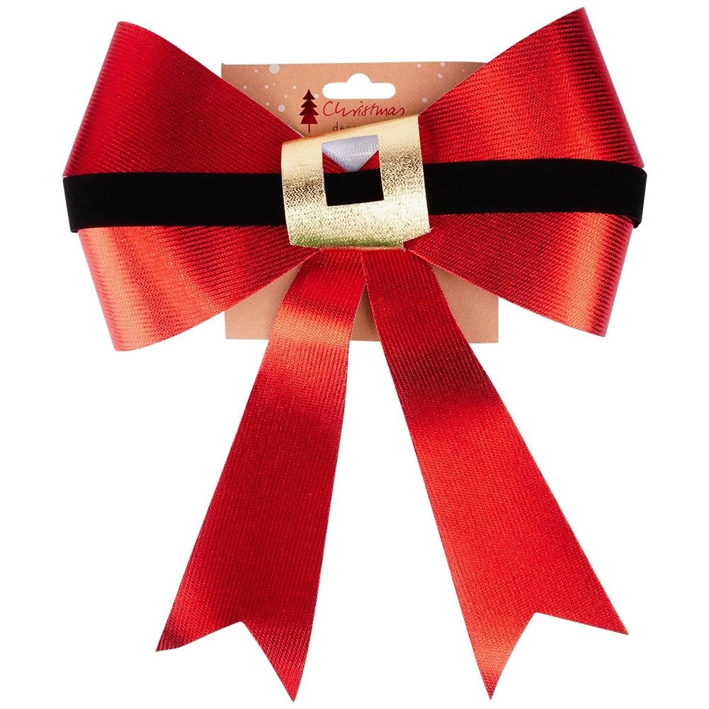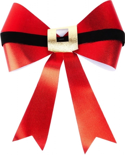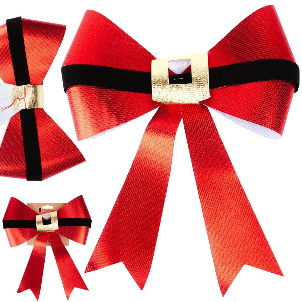 Skab en magisk, festlig atmosfære hjemme og på arbejdet. Denne store julesløjfe i skinnende rød med sort “bælte” og gylden spænde minder om Julemandens bælte, så den straks fanger opmærksomheden og fremhæver enhver indendørs såvel som udendørs dekoration.