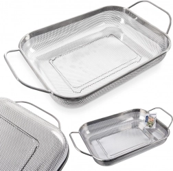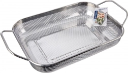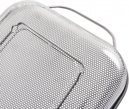 Kurven fungerer som si over vasken og som grillkurv. Perforeringen lader varme og røg passere, mens maden ikke falder igennem.