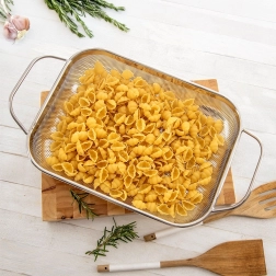 Det fine net leder vandet effektivt væk og holder samtidig selv små madstykker tilbage – ideel til grøntsager, pasta eller ris.