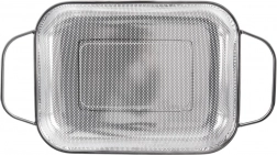 Den alsidige drypbakke ANETT i rummelig rektangulær form gør den daglige madlavning lettere. Den fine perforering i rustfrit stål sikrer hurtig afdrypning af vand og holder samtidig mindre madvarer sikkert inde. To sidehåndtag giver nem håndtering, og fire fødder holder kurven stabilt over bunden af vasken og på grillristen.