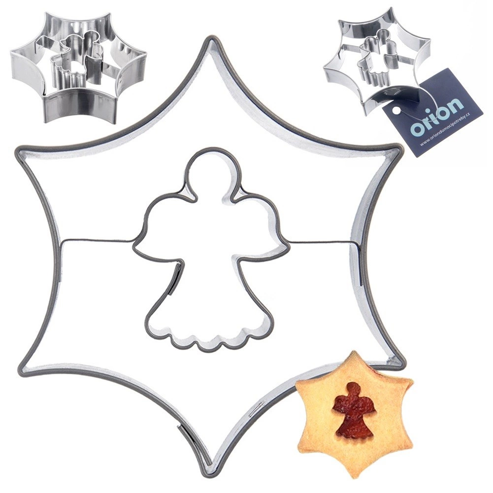 Oplev magien ved hjemmebag med en praktisk udstiksform i stjerneform med en lille engel i midten. Skab nemt effektfulde honningkager og linzer samt originale konditordekorationer. Målet 5,5 × 5,5 cm er ideelt til julebag såvel som helårlig bagning.