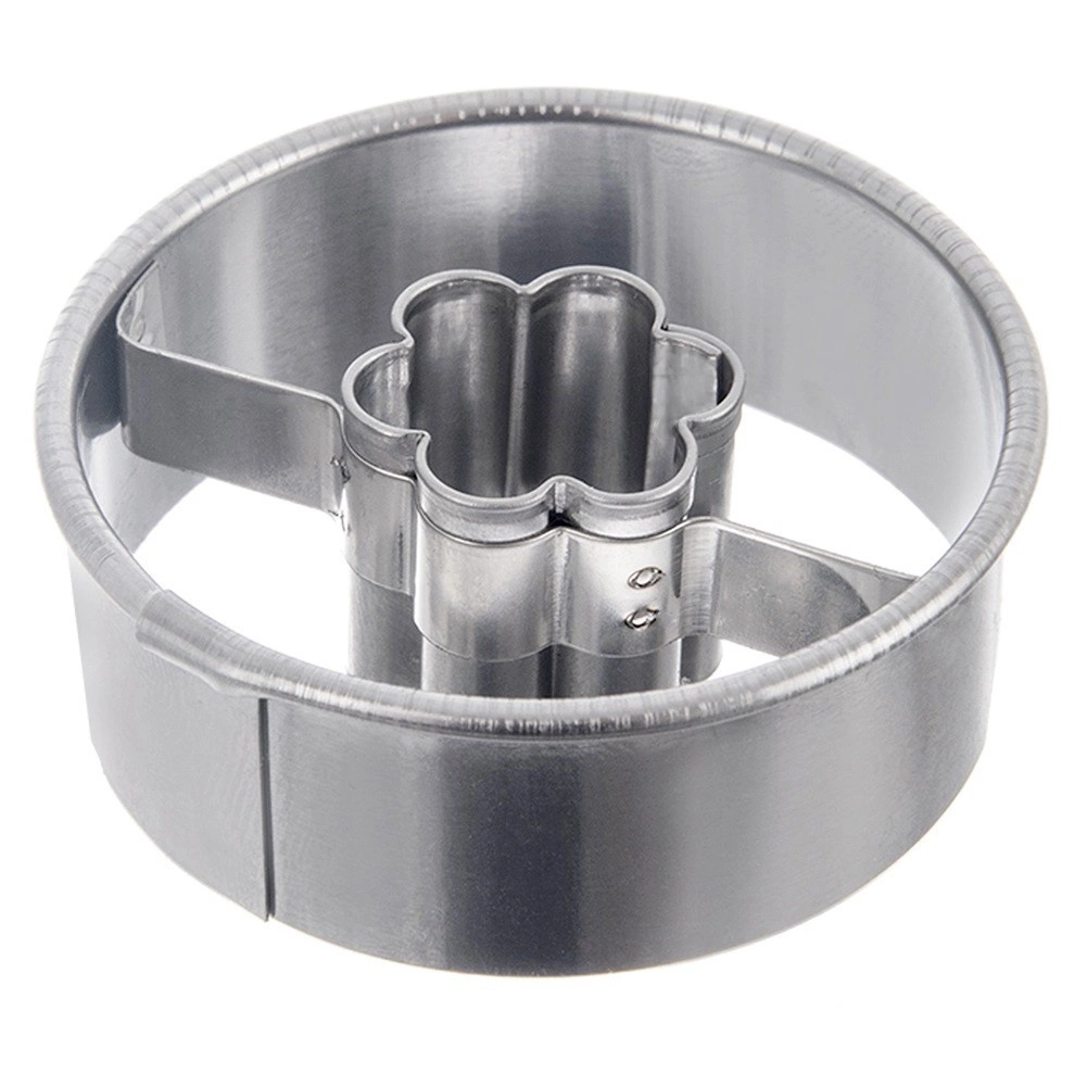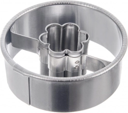 Praktisk udstikker i rustfrit stål i form af en cirkel med blomsterformet hul i midten til nem fremstilling af originale småkager og honningkager. Takket være midten kan småkagerne fyldes med marmelade eller chokolade. Holdbart rustfrit stål, alsidig anvendelse og nem rengøring i opvaskemaskinen gør den til en fremragende hjælper til al bagning.