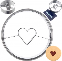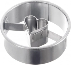 Rund udskæring med rent hjerteformet hul til effektfulde småkager med eller uden fyld. Ideel til linse- og honningkagedej.