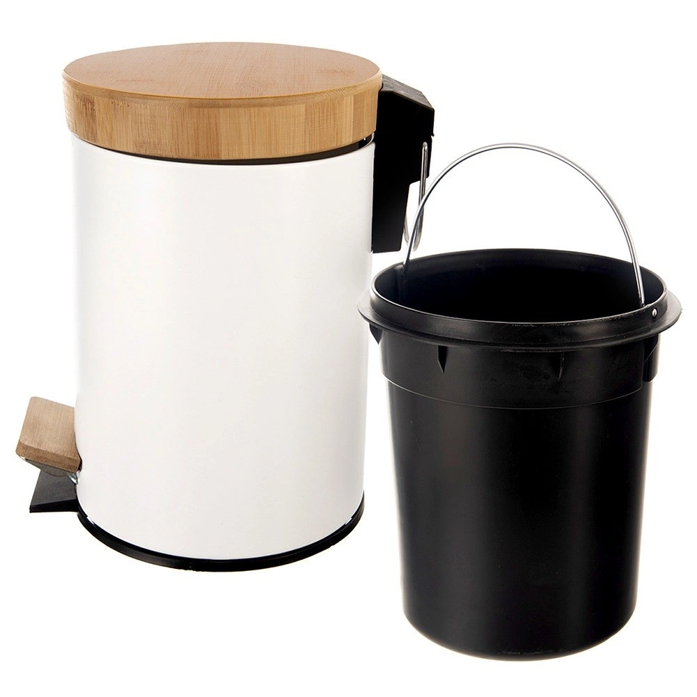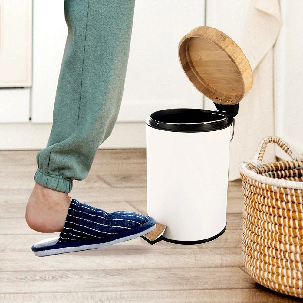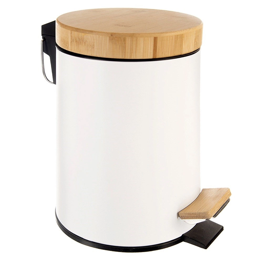 Kompakt affaldsspand med en kapacitet på 3 l i elegant hvidt design med bambuslåg og pedal passer perfekt til badeværelse, kontor eller soveværelse. Støjsvag og hygiejnisk åbning med fodpedal, aftagelig inderspand for nem tømning og moderne, minimalistisk design til enhver indretning.