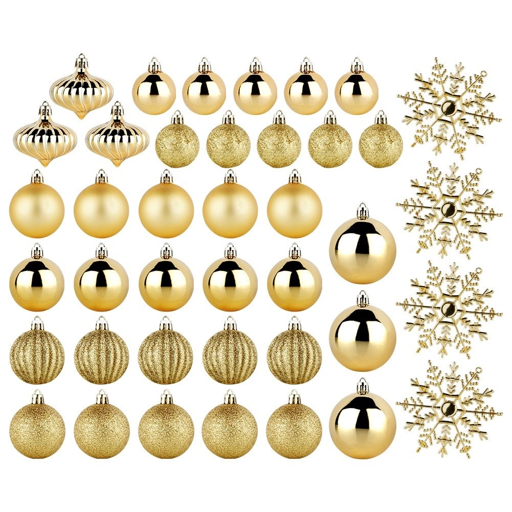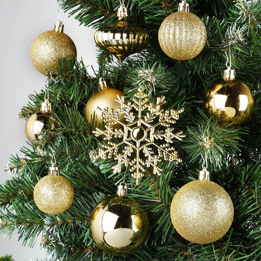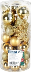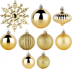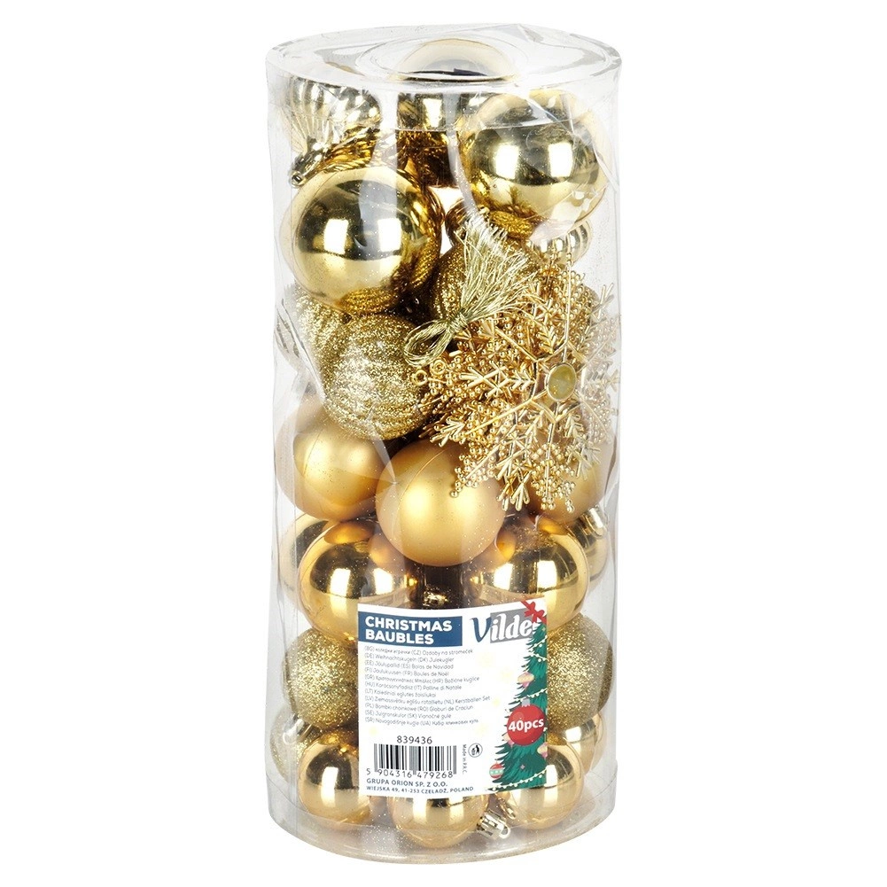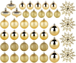 Pakken indeholder 40 kugler (4, 5 og 6 cm) og 4 snefnug på 10 cm, inklusive snore til nem ophængning.
